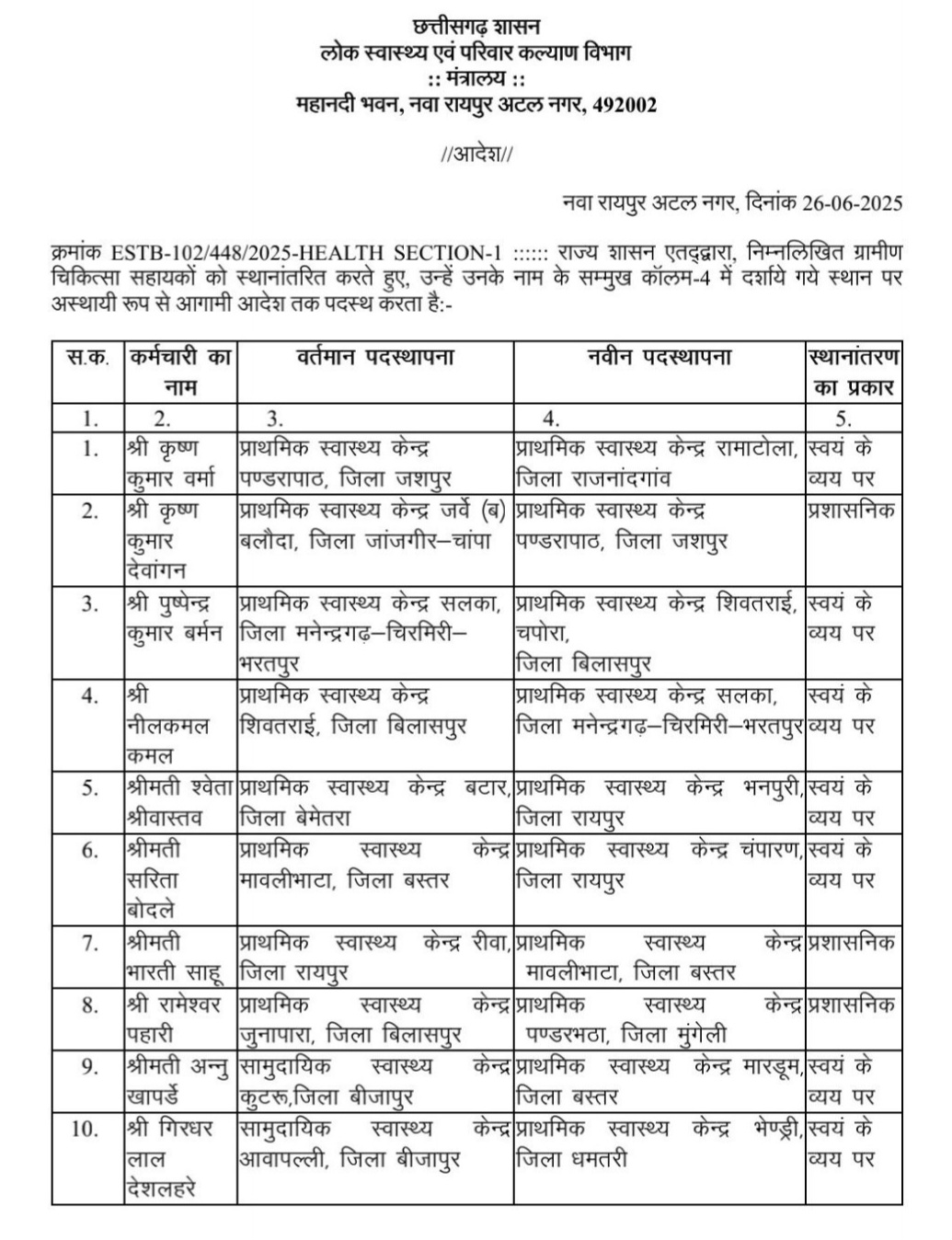 स्वास्थ्य विभाग की कार्यप्रणाली पर संदेह तब और गहरा हो जाता है जब यह सामने आता है कि आरती ताम्रकार नामक एक अन्य ग्रामीण चिकित्सा सहायक को कोडगार से आमाडांड स्थानांतरित कर दिया गया है, जबकि कोडगार में मात्र एक ही ग्रामीण चिकित्सा सहायक पदस्थ था। यहां भी स्टाफ की कमी को नजरअंदाज करते हुए स्थानांतरण को प्राथमिकता दी गई, जबकि इम्तियाज मंसूरी के मामले में यही “कमी” रोड़ा बन गई। इससे यह स्पष्ट होता है कि “कमी” का तर्क चुनिंदा मामलों में ही इस्तेमाल किया जा रहा है और विभागीय निर्णयों में पारदर्शिता नहीं है।