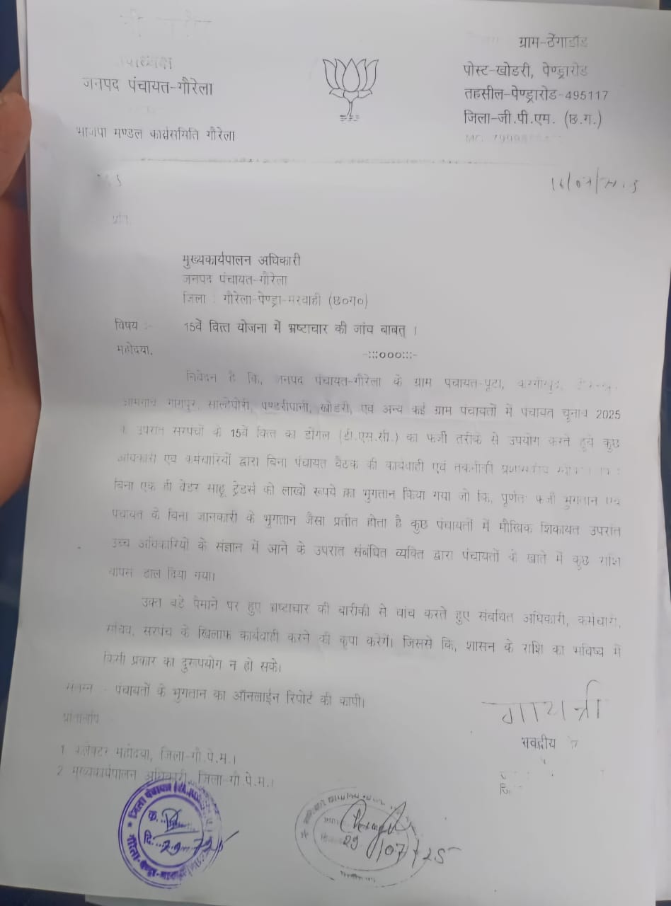 गौरेला-पेंड्रा -मरवाही: 15वें वित्त की राशि पर डाका: पंचायतों का विकास ठप, अधिकारियों-कर्मचारियों की जेबें गर्म, जिला प्रशासन की चुप्पी पर उठ रहे सवाल?
