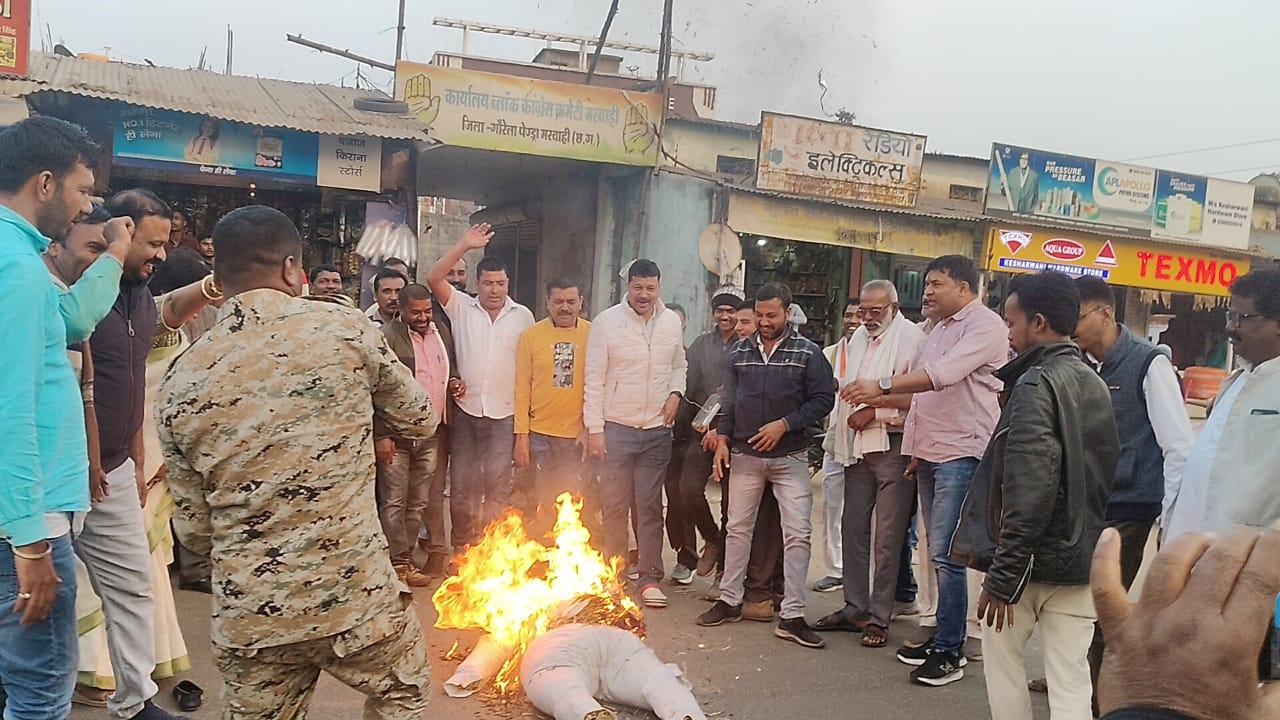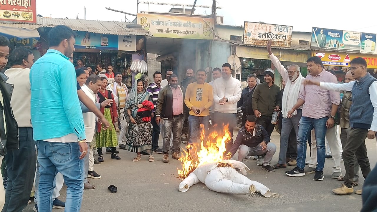 ईडी की द्वेषपूर्ण कार्रवाई के विरोध में गौरेला–पेंड्रा–मरवाही में जिला कांग्रेस ने ईडी का फूंका पुतला