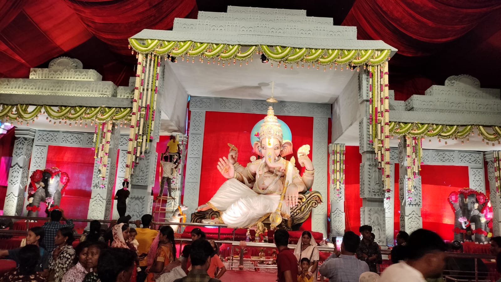 समिति की ओर से प्रतिवर्ष विशाल गणेश प्रतिमा स्थापित की जाती है। इस बार भी 111 फिट ऊंचा केरल का पद्मानाभस्वामी का आकर्षक पंडाल, 21 फीट ऊंचे गणेश जी का भव्य स्वरूप श्रद्धालुओं के बीच आकर्षण का केंद्र बना हुआ है। गणेश प्रतिमा के साथ ही हनुमान जी की जीवंत प्रतिमा और अन्य धार्मिक झांकियां भी लोगों को अपनी ओर खींच रही हैं। खासकर युवा और बच्चे यहां पर सेल्फी लेते हुए नजर आते हैं। भव्य पंडाल का निर्माण कोलकाता से आए कारीगरों ने एक माह से भी अधिक समय तक दिन-रात मेहनत कर तैयार किया है।